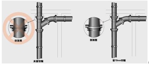 工藝規(guī)定承插口之間應留約10mm間隙,以利伸縮,操作中多忽略此點而將承插口抵死。應事先作出標記,保證留有間隙。