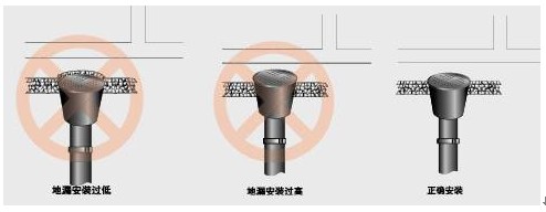 地漏安裝過高,影響排水功能;安裝過低,影響地面美觀。在安裝排水管承水口前,應確切了解地漏規(guī)格和地面裝飾層厚度,計算出排水承口的合理標高。