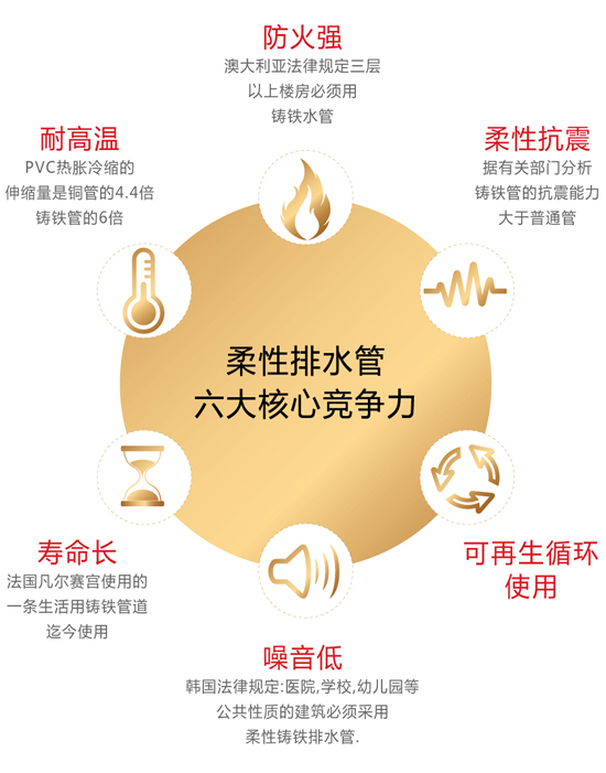 鑄鐵排水管是建筑管道和市政管道重要的組成部分,其最早出現(xiàn)于1644年的法國凡賽爾宮,距今已有三個多世紀的歷史仍承擔著重要排水功能。1993年金秋公司成立了一家以生產(chǎn)鑄鐵排水管為主的科技型企業(yè),至今已發(fā)展成為擁有員工近千人,市政鑄件分廠、鑄管廠、機械鑄件分廠、機加工分廠和鑄鐵冶煉廠多家分廠的鑄鐵排水管生產(chǎn)企業(yè)。公司擁有進出口自營權產(chǎn)品足跡遍布全球,能夠按客戶技術要求生產(chǎn)各類鑄鐵排水管,擁有先進的價格查詢系統(tǒng),能夠實時提供全國各主要產(chǎn)地的鑄鐵排水管價格信息,是國內(nèi)規(guī)模較大的鑄鐵排水管廠家之一,竭誠歡迎廣大客商前來洽談業(yè)務。